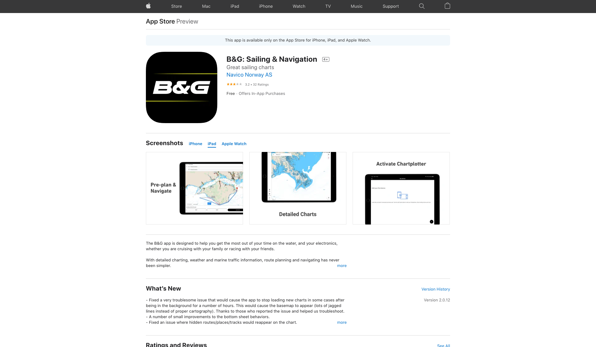 B&G video shows apple watch integration with product and C-Map video demonstrates core app features.